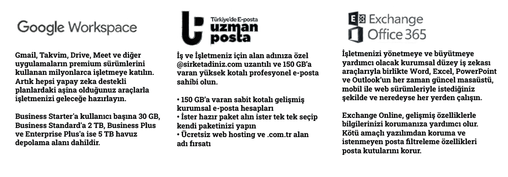Size Özel Alan Adınız ile Profesyonel E-Posta hesapları oluşturun.